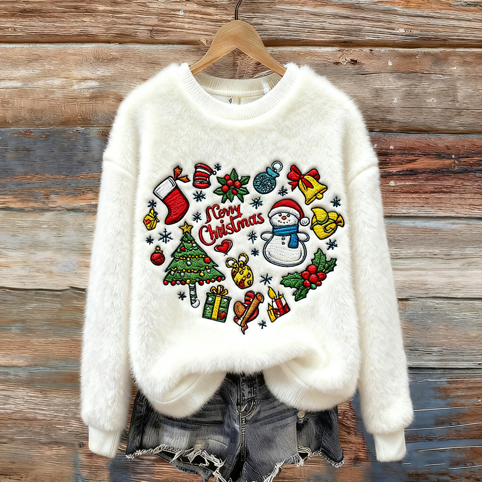 Felpa in flanella accogliente da donna con collo rotondo per il Natale invernale