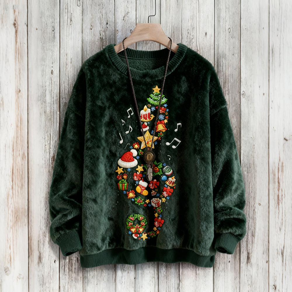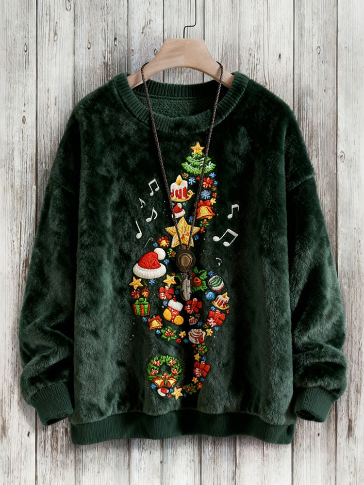 Felpa in Pile Confortevole con Design Ricamato di Musica e Chiave di Violino Natalizia