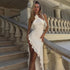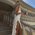 Senti l'abbraccio della grazia con questo abito sontuoso, progettato per farti sentire radiosa. Il suo orlo asimmetrico e i delicati ricami floreali danzano ad ogni tuo passo, trasformando ogni evento in un'occasione memorabile.