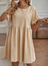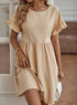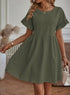 Lasciati avvolgere dalla grazia spensierata di questo abito A-line, pensato per farti sentire splendidamente femminile in ogni momento. Le sue delicate maniche a volant e la vita arricciata creano una silhouette fluida, perfetta per le tue giornate all'insegna della leggerezza.
