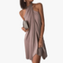 Lasciatevi avvolgere dalla grazia di questo abito, un'ode alla femminilità moderna. La sua silhouette asimmetrica danza con la luce, creando un'aura di sofisticata bellezza.