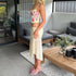 - BRUNCH ESTIVO: Sandali piatti, borsa in paglia, gioielli delicati.