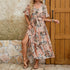 Lasciatevi avvolgere dalla grazia di questo abito, un'ode alla femminilità e alla leggerezza. Un trionfo di fiori che celebra la bellezza della natura.