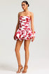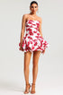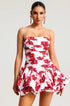 Abito Floreale Senza Spalline – Corpetto Strutturato e Balze