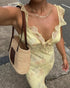 Abbraccia la leggerezza dell'estate con il nostro Abito Floreale, un sogno etereo di balze delicate e spalline sottili, perfetto per serate spensierate e brunch baciati dal sole.