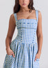 Senti la leggerezza e la libertà avvolgerti con questo abito che evoca un'eleganza spensierata. Il suo design classico a quadretti gingham, impreziosito da uno scollo quadrato e bottoni, è perfetto per le giornate estive.