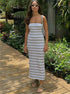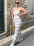 Senti la morbidezza del tessuto in maglia sulla pelle. Questo abito senza spalline incarna la sofisticazione disinvolta per l'estate.