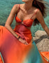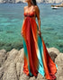 Senti la carezza lussuosa del raso mentre questo abito scivola sulla tua pelle, avvolgendoti nell'incanto della sua sfumatura ombré. Perfetto per serate indimenticabili o fughe estive, ti farà risplendere con un'eleganza senza tempo.