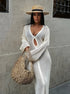 Abbraccia la sensualità eterea con il nostro abito lungo in maglia trasparente, un capo che danza con grazia ad ogni tuo passo. Perfetto per serate al tramonto e feste a bordo piscina, dove ogni movimento è una dichiarazione di stile e fascino inconfondibile.