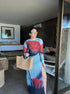 Lasciati avvolgere dalla grazia fluida di questo abito, un'ode alla tua individualità. La sua stampa vivace e il design a maniche lunghe ti faranno sentire radiosa e unica in ogni occasione.
