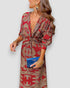 Abito Lungo Stampato – Scollo a V e Nodo in Vita