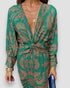 Avvolgiti in un'aura di eleganza senza sforzo con questo abito stampato, progettato per farti sentire sicura e irresistibilmente femminile. Il suo design distintivo, con scollo a V e un nodo strategico in vita, crea una silhouette fluida che si adatta con grazia ad ogni movimento.