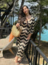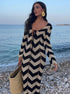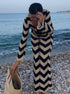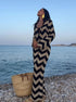 Avvolgiti in un'eleganza senza sforzo con il nostro abito in maglia, una sinfonia di morbidezza e stile. Il distintivo motivo chevron e le maniche lunghe creano un look sofisticato, perfetto per ogni occasione che richiede comfort e raffinatezza.