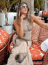 Abito Maxi Halter Stampa Unica Tessuto Testurizzato