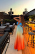 Lasciati trasportare dalla leggiadria di questo abito, un inno alla femminilità. Scivola in un mare di pieghe e tessuti impalpabili, pronta a conquistare la scena.