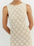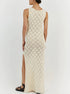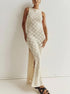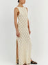 Lasciati avvolgere da un'eleganza disinvolta che danza con ogni tuo passo, un inno alla libertà e alla fiducia. Questo abito maxi senza maniche, con la sua seducente lavorazione a maglia aperta, è l'incarnazione della sofisticazione estiva.