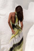 Lasciati avvolgere dalla sensazione di libertà e leggerezza con l'Abito Maxi Tie-Dye. Il suo scollo drappeggiato e la silhouette fluida creano un'eleganza senza sforzo, perfetta per le serate estive o le fughe al mare.