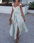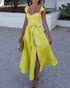 Lasciati avvolgere dall'eleganza senza tempo di questo abito midi, un capolavoro floreale che esalta la tua silhouette con grazia. Il design senza maniche, l'incantevole fiocco in vita e lo spacco frontale creano un look raffinato, perfetto per eventi speciali e serate indimenticabili.