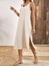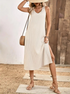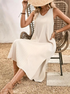 Senti la libertà di movimento in questo abito midi, un sussurro di estate sulla tua pelle. Lasciati sedurre dalla sua leggerezza, perfetto per catturare ogni raggio di sole.
