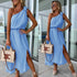 Senti la brezza estiva accarezzarti mentre indossi questo abito che celebra la tua silhouette con grazia e audacia. Il design monospalla, lo spacco laterale e la cintura in vita creano un look distintivo, perfetto per serate indimenticabili o fughe esotiche.