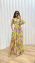Abito Monospalla con Stampa Floreale e Spacco Elegante