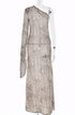 Svela il tuo lato selvaggio con questo abito monospalla, un'ode alla femminilità audace. La stampa animalier cattura lo sguardo, mentre la silhouette fluida accarezza la pelle.