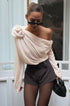 Senti l'eleganza avvolgerti mentre questo abito esalta la tua silhouette con grazia in ogni movimento. Il design a spalle scoperte e il delicato dettaglio a rosa creano un look indimenticabile, perfetto per serate esclusive e celebrazioni.