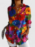 - Stampa colorata unica: Aggiunge un tocco allegro e artistico al tuo outfit.