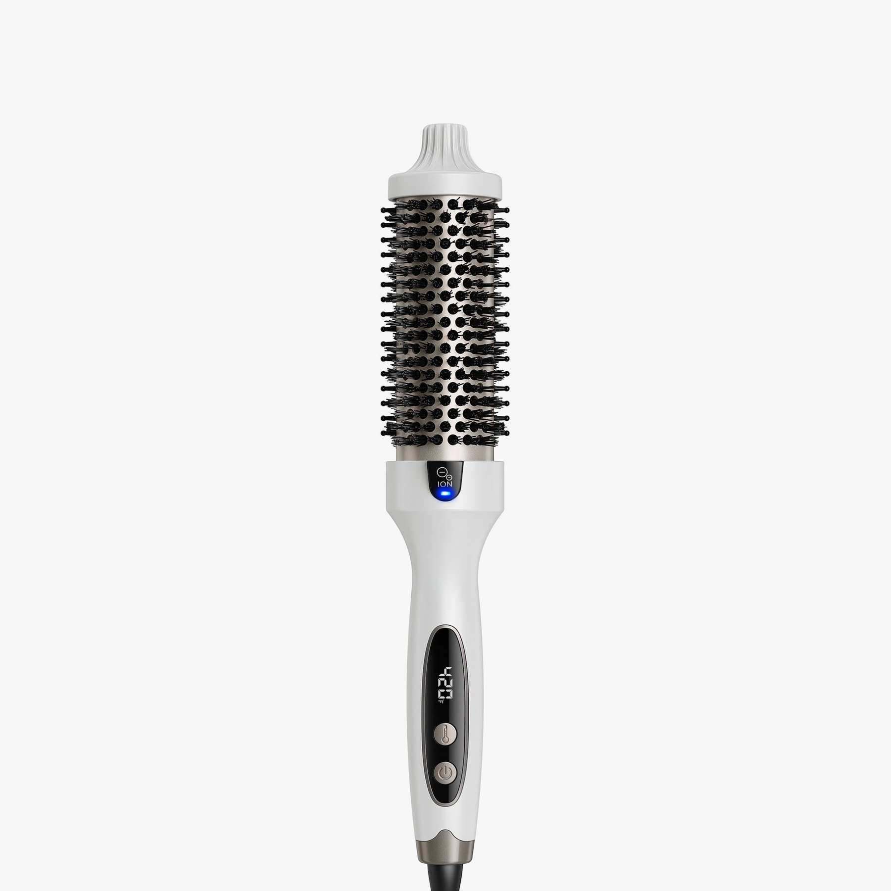 Ottieni il volume di una spazzola rotonda e il calore di uno strumento per lo styling, tutto in uno. La spazzola termica ti dona un look vaporoso e brillante senza dover destreggiarti tra spazzola e asciugacapelli. Basta collegarla alla presa, spazzolare i capelli e guardare la loro trasformazione.