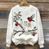Maglione in peluche accogliente con ricamo di Natale, gatto e uccello per donna