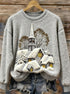 Maglione in Pile da Donna con Ricamo di Scena Natalizia e Casa