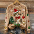 Maglione morbido in peluche ricamato con albero di Natale e gatto per donne