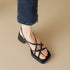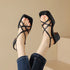 - Design: punta quadrata aperta con cinturini incrociati